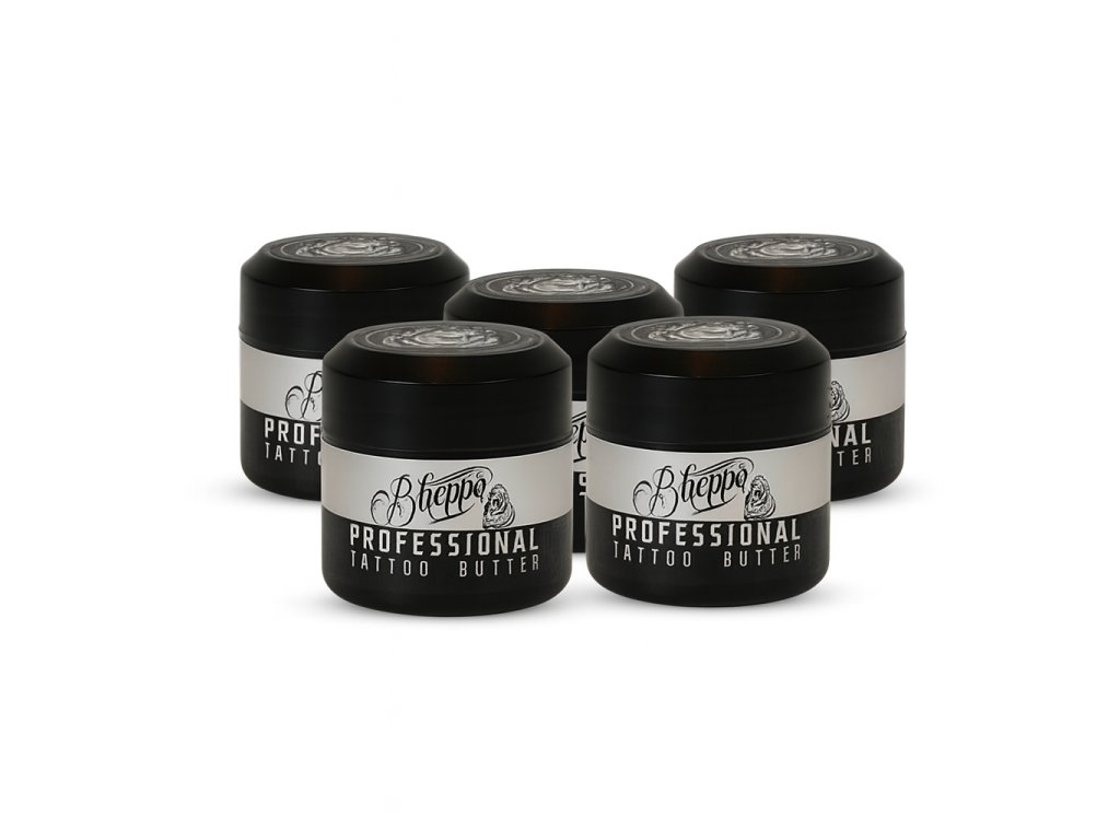 Představujeme Vám naše prémiové tetovací máslo, pečlivě vytvořené pro zlepšení vašeho zážitku z tetování a usnadnění optimálního hojení během následné péče. Obohacené o vyživující vlastnosti bambuckého másla, naše tetovací máslo dodává vaší pokožce nezbytné živiny, podporuje rychlé hojení a zajišťuje dlouhou životnost vašeho tetování.